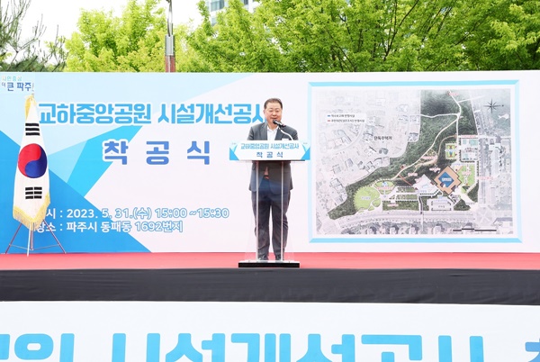 (서울=NSP통신) 강은태 기자 = 파주시가 5월 31일, 교하 중앙공원 시설개선공사 착공식을 개최했다.