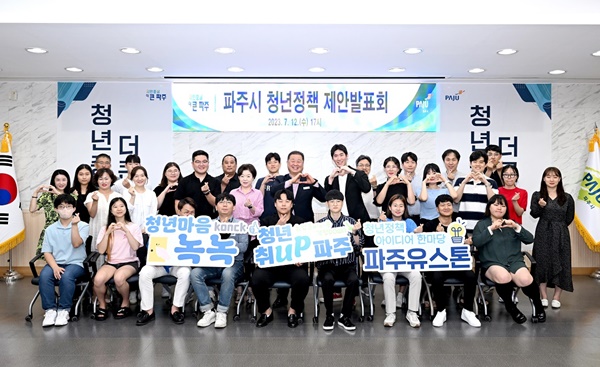 청년협의체가 발표한 3대 정책 제안은 ▲청년정책 해커톤 대회 개최(소통참여분과·파주유스톤) ▲취업준비청년 구직활동비 지원(일자리분과·파주청년 취업(UP)성공) ▲청년 마음건강 지원(복지문화분과·청년마음 녹녹)이다.