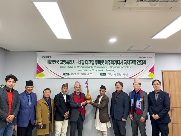(서울=NSP통신) 강은태 기자 = 고양특례시(시장 이동환)는 지난 7일 네팔 디크텔 루파콧 마주와가디시(Diktel Rupakot Majhuwagadhi Municipality) 티르타 라지 바타라이(Tirtha Raj Bhattari) 시장을 비롯한 대표단이 고양시청을 방문했다.