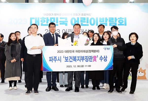 (서울=NSP통신) 강은태 기자 = 파주시가 8일 어린이동아, 아동권리보장원이 주최하고 보건복지부, 여성가족부, 대통령 직속 저출산고령사회위원회 등이 후원하는 ‘2023 대한민국 어린이박람회’에서 대한민국 어린이대상(정책분야) 보건복지부장관 기관 표창을 수상했다.