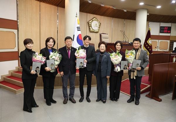 한편 2023년 ‘의정활동 우수의원’으로 장예선, 김민숙, 김희섭, 신인선, 최성원 의원 5명이 선정돼 수상의 영예를 안았으며 의회사무국 운영과 의정활동 보좌를 위해 노력해온 유영열 의정 담당관에게 감사패 수여 및 의회사무국 우수 직원 5명에게 표창장을 수여했다.