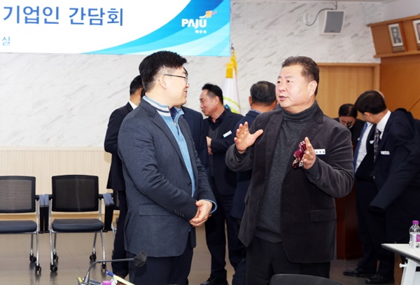 한편 이날 간담회는 파주시장 주재로 국·소 단장이 모두 참석한 가운데 ▲디스플레이 분야, 엘지디스플레이, 엘지이노텍, 파주전기초자 ▲반도체 분야, 에이에스이코리아, 시그네틱스 ▲문화·콘텐츠 분야, 씨제이이엔엠, 교보문고, 웅진씽크빅 ▲상업·판매 분야, 롯데백화점, 신세계사이먼 ▲바이오 분야, 파주메디컬클러스터 관계자 등 관내 주요 기업인이 대거 참석했으며 산업 입지 전문가인 산업연구원 이원빈 박사가 경제자유구역에 대한 발표를 진행했다.