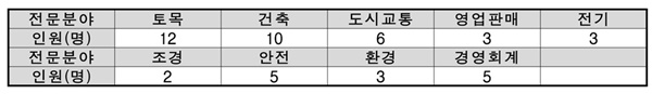 한편 모집 분야는 토목, 건축, 도시·교통, 영업·판매, 경영 회계 등 9개의 전문 분야로 50인 내외의 전문가를 위촉할 예정이며 자격요건은 공무원, 단체 및 연구기관, 대학교수 및 박사, 기술사 등 관련분야의 전문지식과 실무경험이 풍부한 위원을 모집한다는 계획이다.