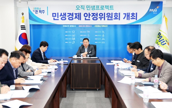 이날 ‘민생경제 안정위원회’ 회의에는 김경일 파주시장(위원장)을 중심으로 부위원장(부시장), 민생경제실장(재정경제실장)과 5대 정책의 사업의 11개 부서장이 참석했다.