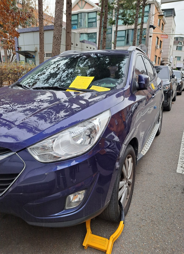 NSP통신-현장에서 단속돼 족쇄가 채워진 대포차 (사진 = 고양시)