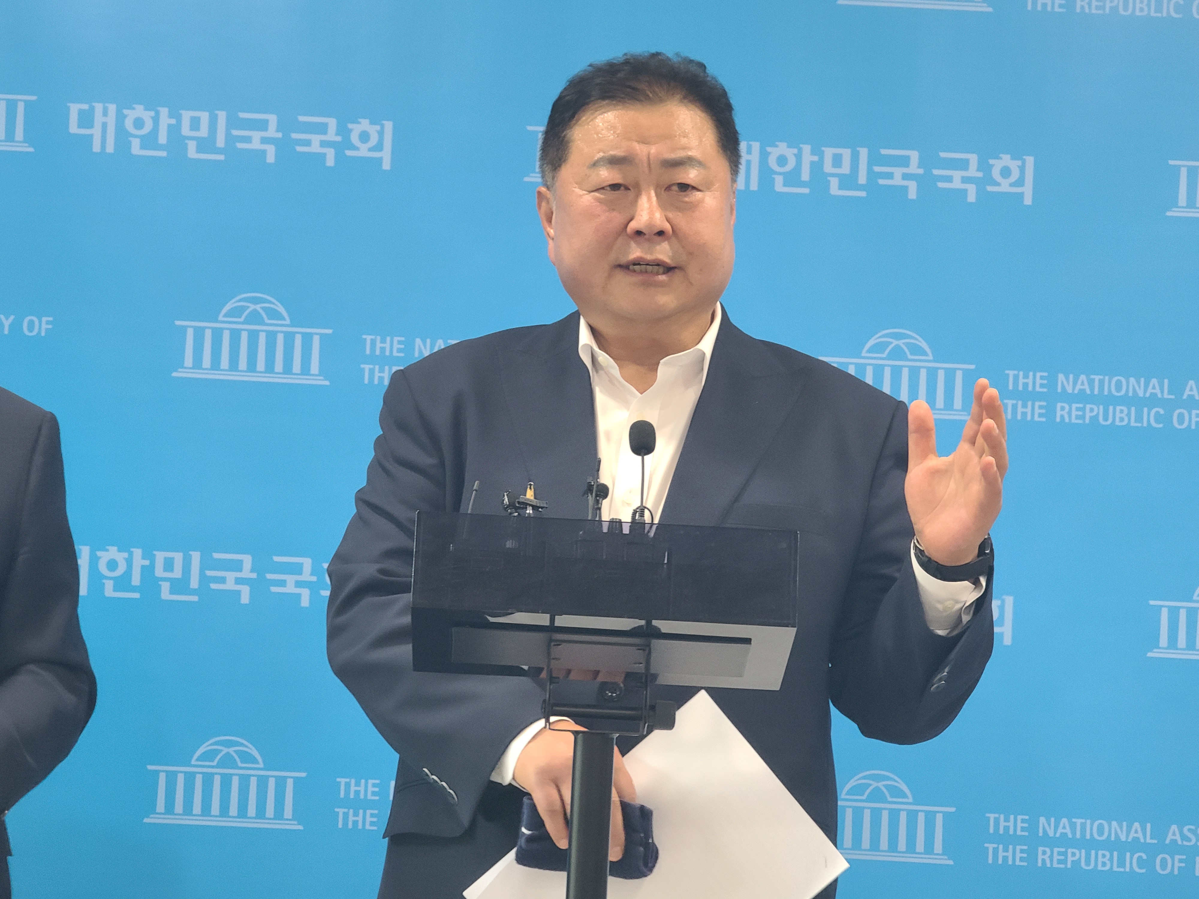(서울=NSP통신) 강은태 기자 = 김경일 파주시장이 20일 오후 2시 20분 국회 소통관에서 윤후덕 더불어민주당 국회의원(경기 파주시갑)과 함께 기자 회견을 갖고 파주시 경제가 북한의 오물 폭탄을 막지 못하면 말할 수 없이 어려워진다며 정부를 향해 강경 대응 자제를 촉구했다.