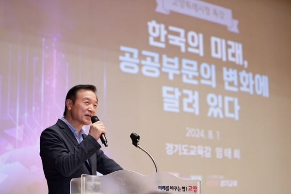 임태희 경기도교육감은 ‘한국의 미래, 공공부문의 변화에 달려 있다’를 주제로 고양시 공직자를 대상으로 특강을 진행했다. 임 교육감은 강연에서 1960년대 이후 대한민국 현대사의 산업화, 민주화 등 역사적 변곡점을 언급하고 공공부문의 개방성과 혁신성을 강조하며 변화를 당부했다.