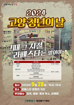(서울=NSP통신) 강은태 기자 = 고양특례시(시장 이동환)는 오는 28일 오후 4시부터 일산 라페스타 야외무대에서 ‘2024년 고양 청년의 날’행사를 개최한다.