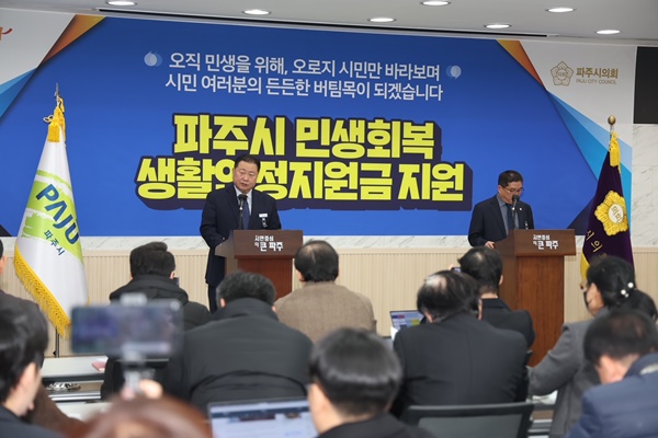 특히 김 시장은 “내수 살리기에도 골든 타임이 있기 때문에 민생 안정을 위해 신속하게 민생회복지원금 지급을 결정했다”며 “민생을 최고의 가치로 파주시의회와 함께 설 명절 전후로 52만 파주시민 모두가 민생회복지원금을 지급받을 수 있도록 철저히 준비하고 시행해 민생안정에 최선을 다하겠다”고 약속했다.