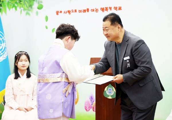 한복을 곱게 차려입고 졸업식에 참석한 졸업생들 모두에게 교장 표창이 수여된 데 이어 제1군단장상, 군사정전위원회 수석대표상, 제1보병사단장, 통일부장관상, 파주시장상, 국회의원상 등도 전달됐다.