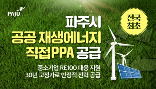 신청 대상은 파주시 소재 공장등록을 한 중소기업 중 300킬로와트(kW) 이상의 고압 전기를 사용하는 기업으로 3월 14일까지 신청을 받는다. 파주시는 수요기업 선정 후 2025년 7월 직접 전력구매계약(PPA)을 체결하고 12월부터 전력 공급을 시작할 예정이다.