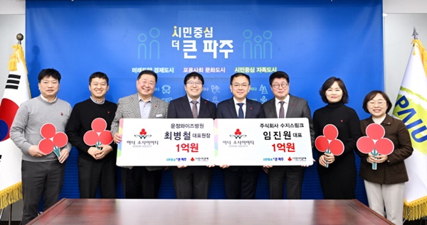 김경일 파주시장은 “나눔문화를 선도하며 뜻깊은 결심을 실천해 주신 기부자들께 감사드리며 파주시도 이와 같은 나눔 정신으로 지역 사회 발전에 최선을 다하겠다”고 말했다.