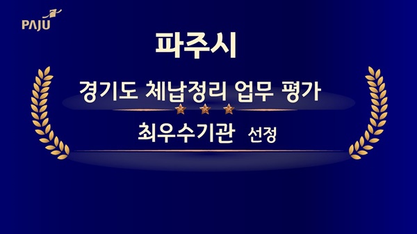 (서울=NSP통신) 강은태 기자 = 파주시가 2025년 경기도가 주관한 ‘지방세 체납정리업무 평가’에서 최우수기관(3그룹)으로 선정돼 기관 표창과 함께 3000만 원의 시상금을 받았다.
