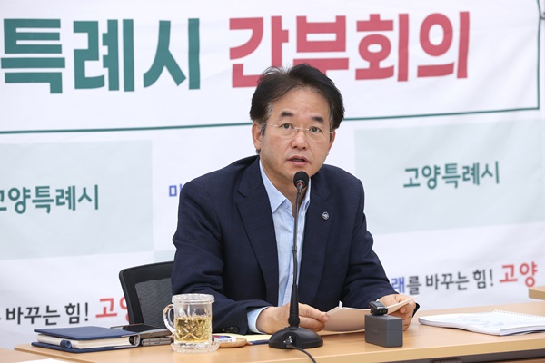 (서울=NSP통신) 강은태 기자 = 이동환 고양시장은 11일 백석별관 20층 회의실에서 개최한 간부회의에서 민선 8기 고양 성공시대, 시민 행복 시대 완성을 주문했다.