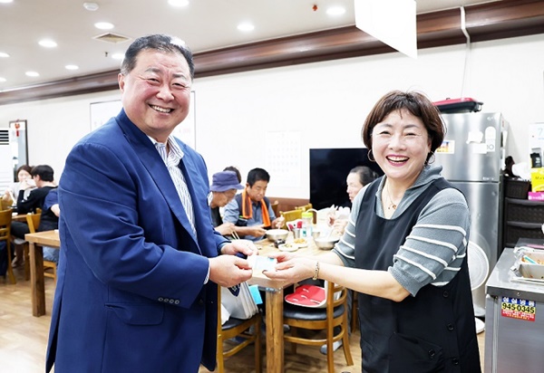 (서울=NSP통신) 강은태 기자 = 김경일 파주시장은 지난 24일 문산 자유시장에서 읍면장과 오찬 간담회를 개최하고 ‘민생회복 소비쿠폰’을 파주페이로 결제하며 ‘민생회복 소비쿠폰’ 사용을 독려했다.
