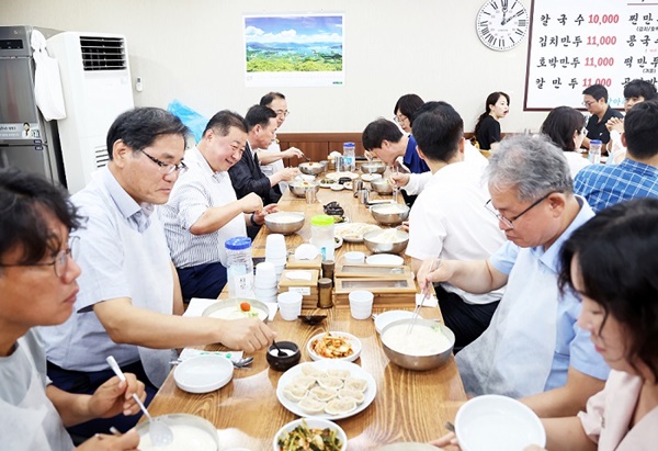 문산읍과 적성면, 파평면 등 파주 북부 지역 읍면장이 함께한 오찬간담회 자리에서 김 시장은 집중호우와 폭염 대응에 만전에 기할 것을 당부하며 민생회복 소비쿠폰 신청과 사용에 어려움이 없도록 현장에서 애써달라고 강조했다.