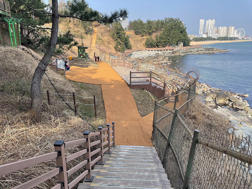 시는 올 2월 말부터 3월 중순까지 외옹치해변 방면 400m가량을 폐쇄한 후 ‘바다향기로 외옹치구간 산책로 시설개선공사’를 완료하고 전 구간을 개방했다.