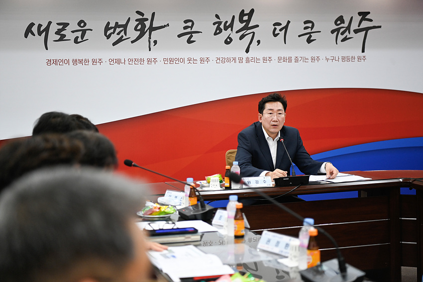 NSP통신-25일 원강수 원주시장이 시의원, 대중교통 이용촉진 및 편의 증진 위원회, 운수업체 관계자 등이 참석한 가운데 열린 대중교통 개선방안 연구용역 최종보고회에서 발언하고 있다. (사진 = 원주시)