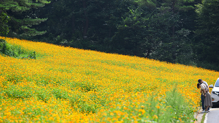 황금 코스모스 만개한 정선군 ‘병방산 군립공원’