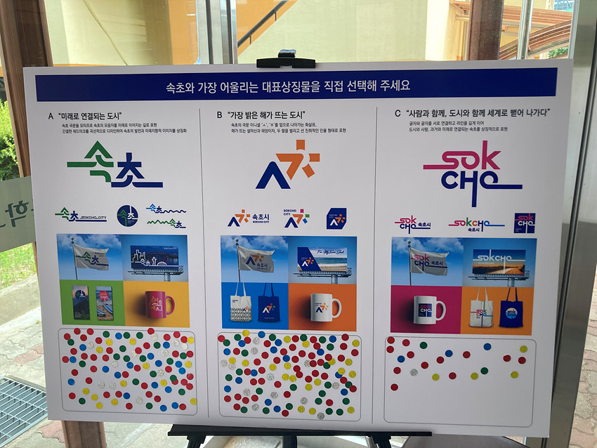 시는 새로운 CI, 캐릭터 개발과 함께 저작권 걱정 없이 누구나 자유롭게 이용할 수 있는 속초의 개성을 담은 전용서체도 개발 진행 중으로 선호도 조사 결과를 토대로 최종안을 확정한 뒤 수정·보완 작업을 거쳐 10월 시민의 날에 선포식을 열고 ‘속초시 상징물에 관한 조례’개정·공포 이후 새 상징물(CI·캐릭터·서체) 사용에 들어갈 계획이다.