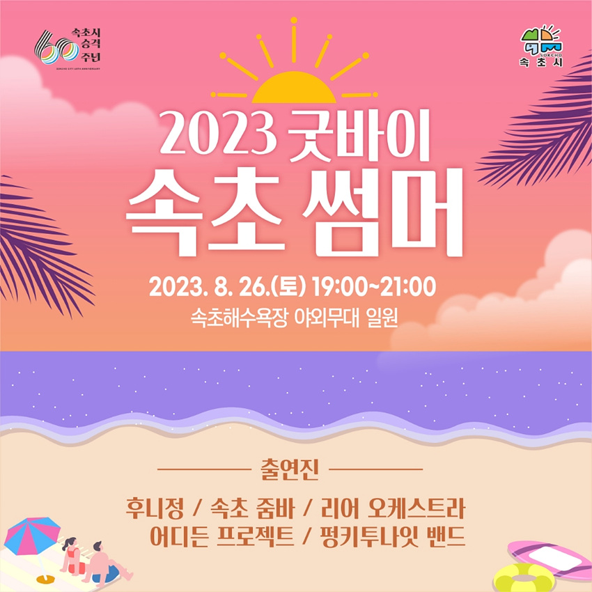 (강원=NSP통신) 조이호 기자 = 강원특별자치도 내 86개 해수욕장 가운데 가장 늦게 문을 닫는 속초해수욕장 특설무대에서 여름을 보내는 아쉬움을 달랠 ‘굿바이 속초 썸머 페스티벌’이 오는 26일 오후 7시 개최된다.