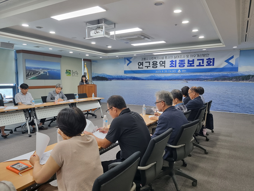 (강원=NSP통신) 조이호 기자 = 강원특별자치도 강릉시(시장 김홍규)가 25일 시청 8층 상황실에서 사회복지시설 종사자 실태조사 및 처우개선 종합계획 수립을 위한 연구용역 최종보고회를 개최했다.