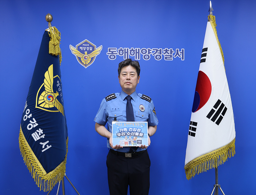 (강원=NSP통신) 조이호 기자 = 강원특별자치도 동해해양경찰서 유충근 서장이 29일 우리 수산물 소비촉진 및 어촌휴가 장려 챌린지를 참여했다.