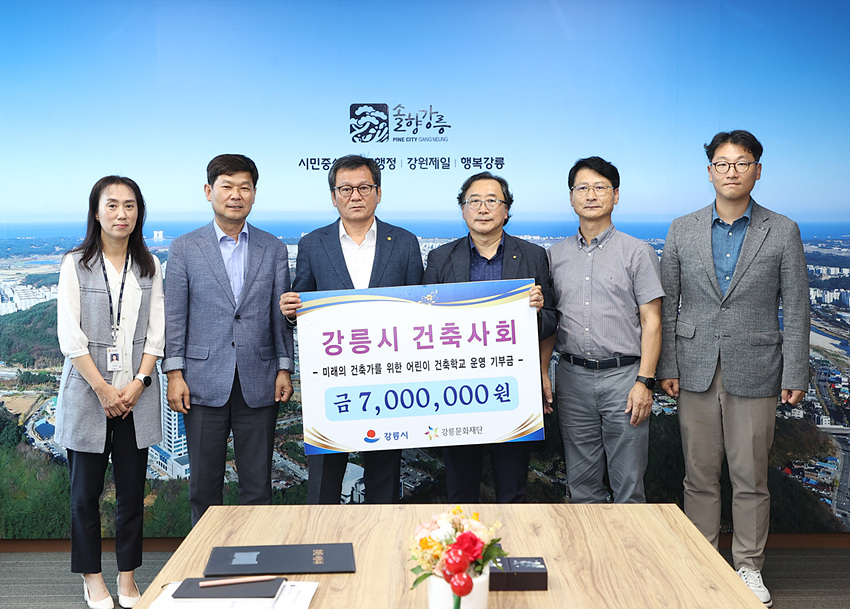 (강원=NSP통신) 조이호 기자 = 강원특별자치도 강릉시 건축사회(회장 조정희)가 29일 강릉시청에서 강릉문화재단(이사장 김홍규)에 지역사회의 건축문화 발전을 위한 기부금을 전달했다.