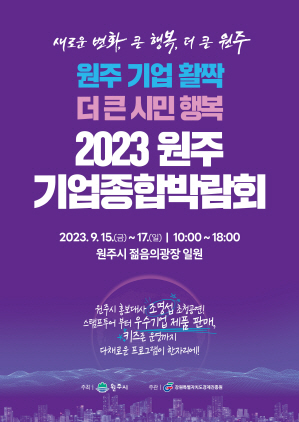 (강원=NSP통신) 조이호 기자 = 강원특별자치도 원주시(시장 원강수)가 오는 15일부터 17일까지 3일간 젊음의 광장 일원에서 ‘2023 원주 기업종합박람회’를 개최한다.