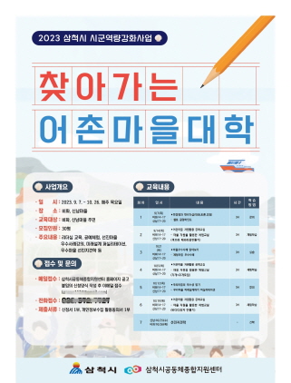(강원=NSP통신) 조이호 기자 = 강원특별자치도 삼척시(시장 박상수)와 삼척시공동체종합지원센터가 ‘찾아가는 어촌마을 대학’을 운영한다.