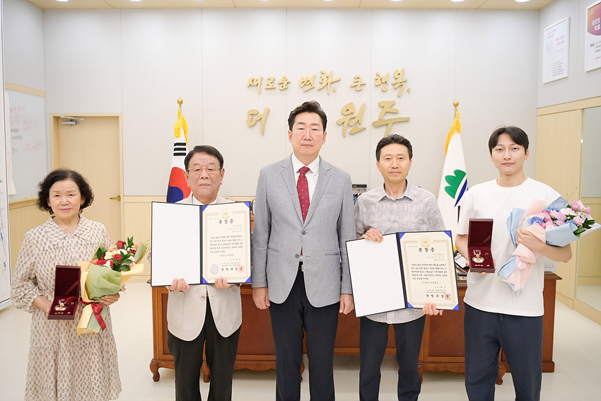 원강수 시장은 “늦게나마 화랑무공훈장을 전달할 수 있게 되어 감사하고 훈장과 메달이 유가족에게 돌아가 기쁘다”며 “앞으로도 보훈 가족의 명예를 높이고 예우하는 데 최선을 다하겠다”고 말했다.