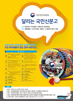 달리는 국민신문고는 국민권익위원회와 공공기관 조사관들이 직접 현장을 방문해 원주·횡성지역 주민의 생활 불편 등 고충 민원을 청취 및 상담하며 대안을 모색하는 민원서비스로 건설·교통·복지·생활법률·산업경제 등 14개 분야의 다양한 일상생활에서의 불편사항을 상담하게 된다.