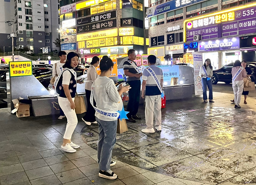 NSP통신-동해시에서 청소년이 안전한 지역사회를 주제로 한 야간 아웃리치 활동을 펼치고 있는 모습. (사진 = 동해시)