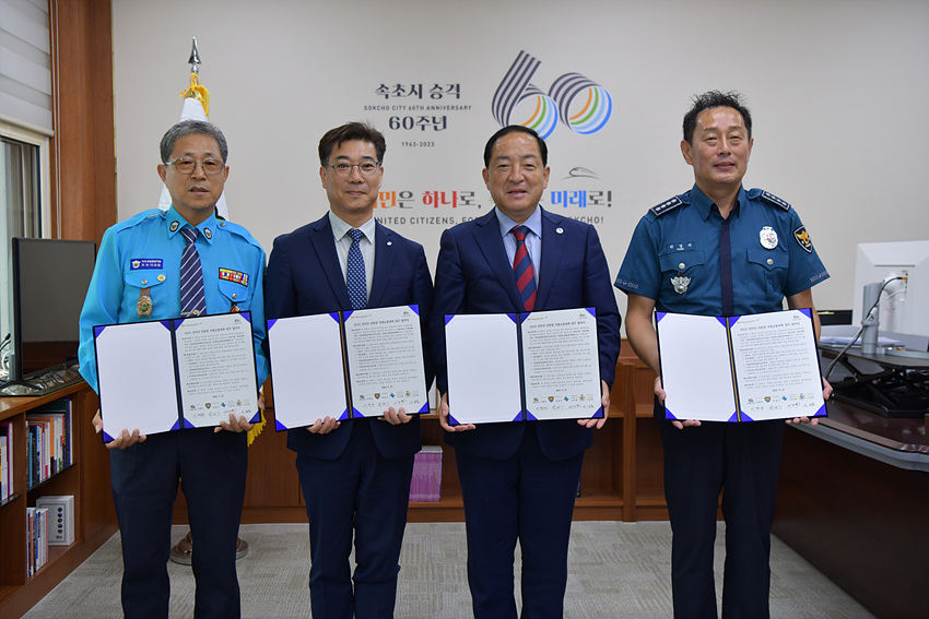 (강원=NSP통신) 조이호 기자 = 강원특별자치도 속초시(시장 이병선)가 속초경찰서(서장 박경서), 국립공원공단설악산사무소(소장 이진철), 속초모범운전자회(회장 이상동)와 27일 시장 집무실에서 ‘2023년 설악산 단풍철 특별교통대책’을 위한 업무협약을 체결했다.