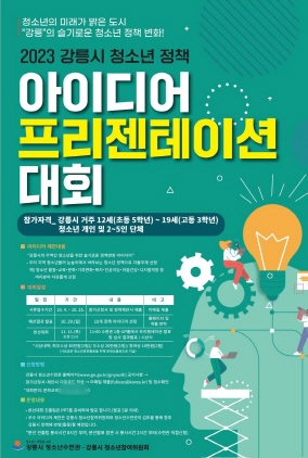 (강원=NSP통신) 조이호 기자 = 강원특별자치도 강릉시(시장 김홍규) 청소년수련관과 청소년참여위원회가 ‘강릉의 슬기로운 청소년 정책변화!’를 슬로건으로 진행하는 ‘2023 강릉시 청소년 정책 아이디어 프레젠테이션 대회’ 참가 청소년을 오는 25일까지 모집한다.