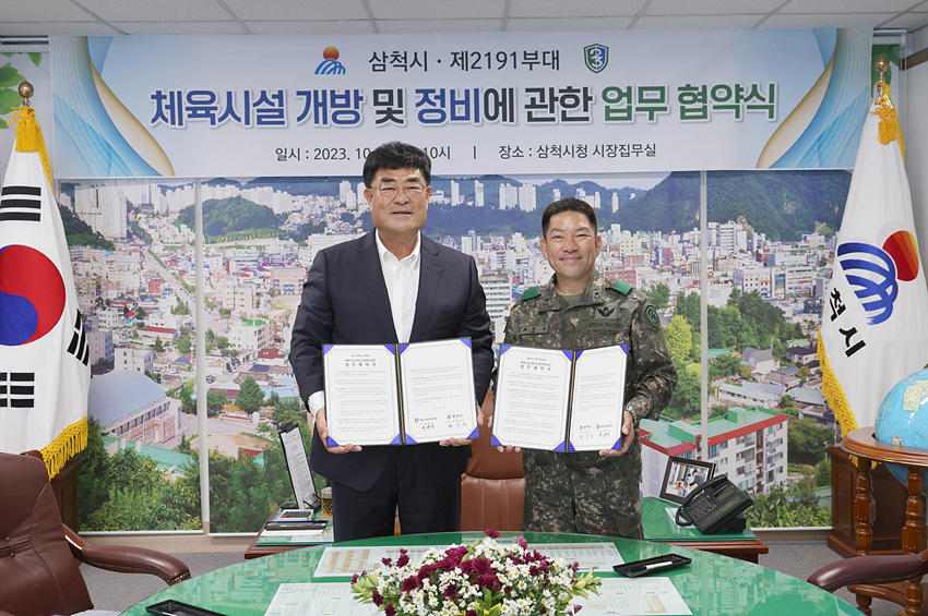 (강원=NSP통신) 조이호 기자 = 강원특별자치도 삼척시(시장 박상수)가 17일 시장 집무실에서 제2191부대와 체육시설 개방 및 정비에 관한 업무 협약을 체결했다.