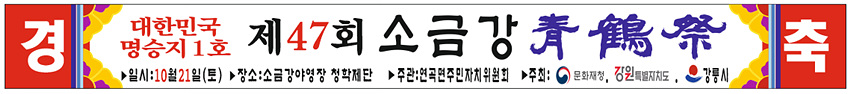 (강원=NSP통신) 조이호 기자 = 강원특별자치도 강릉시(시장 김홍규) 연곡면에서 오는 21일 오전 11시 지역주민 및 등산객의 무사 안녕과 지역발전을 기원하는 ‘제47회 소금강 청학제’가 개최된다.