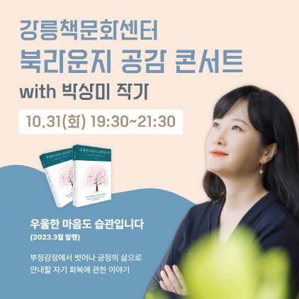 2회차 공감 콘서트 작가는 ‘우울한 마음도 습관입니다’의 저자 박상미 작가로 ‘부정 감정에서 벗어나 긍정의 삶으로 안내할 자기 회복에 관한 이야기’라는 주제로 시민들과 소통하는 시간을 갖는다.
