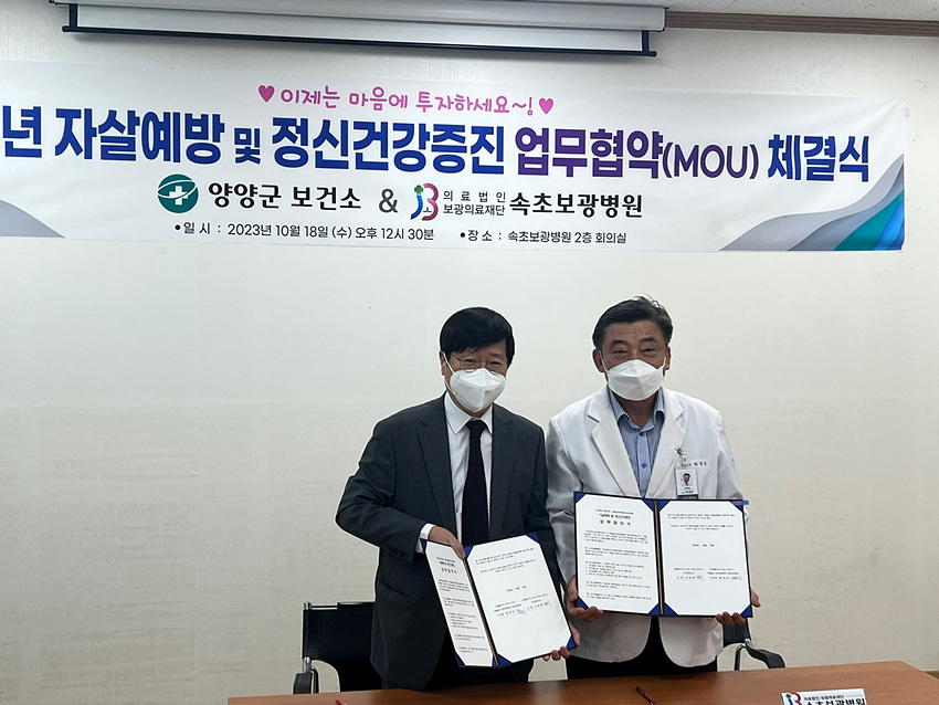 협약을 통해 군은 속초보광병원과 긴밀한 협조체제를 유지하며 의료사각지대 군민들의 정신건강 증진에 더욱 힘쓸 예정이다.