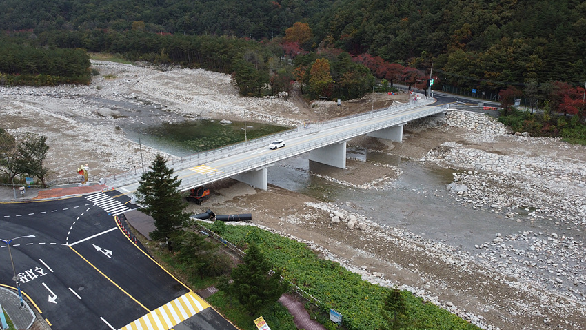 또한 교량통행에 따른 안전확보는 물론 설악산을 배경으로 한 포토존, 설악을 품은 동물상과 설악의 비경을 형상화한 조형물을 배치하고 야간 경관조명이 설치돼 설악을 찾는 관광객과 시민들이 설악의 절경을 주·야간으로 보고 즐길 수 있도록 명품교량으로 조성했다.