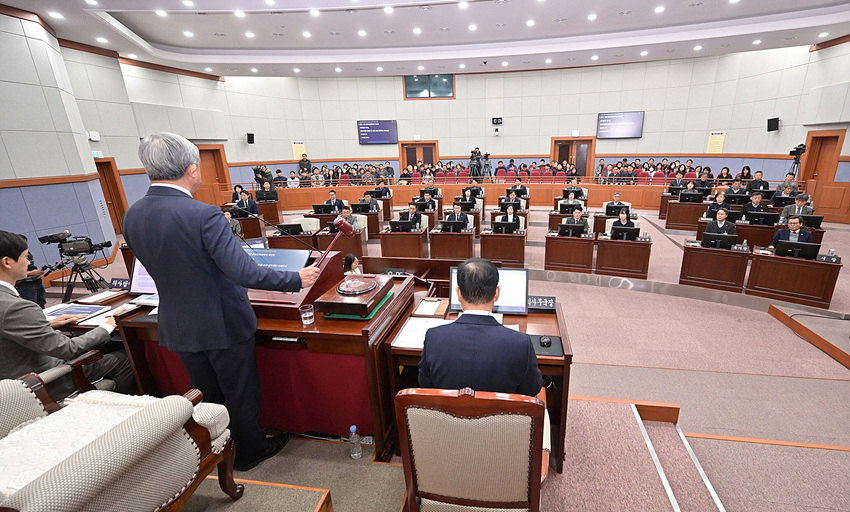 2024년도 당초예산안의 총 규모는 전년 대비 2% 감소한 1조 4301억 1700만원으로 편성됐으며 일반회계에서 1조 2646억 4800만원, 특별회계에서 1654억 6900만원으로 편성하고 명확한 사업 지표를 수립해 예산집행에 만전을 기해줄 것을 주문하며 당초 예산안은 수정가결, 기금운용 계획안은 원안가결했다.