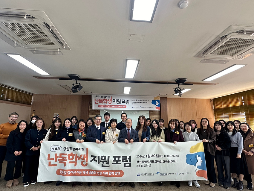 (강원=NSP통신) 조이호 기자 = 강원도교육청(교육감 신경호)이 30일 도교육청 교육연구원 대강당에서 도내 교원, 학습클리닉전문가, 언어재활사, 경계선지능인지원센터 느린소리 관계자 등이 참여한 가운데 제6회 난독 학생 지원 포럼을 개최했다.
