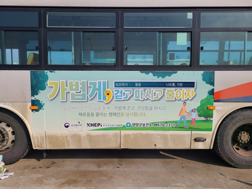 군은 지역을 순회하는 시내버스 3대에 각각 금연을 비롯해 심뇌혈관질환 숫자알기, 건강한 생활습관 유도 관련 홍보문을 부착해 지속적인 시각적 노출을 통해 주민들의 금연 욕구를 끌어올리고 건강한 생활습관을 홍보하는 데에 중점을 두었다.
