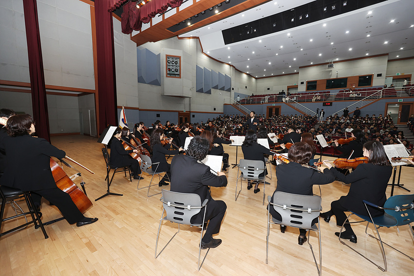 이번 월례조회는 직원들에게 봄의 정취를 느끼고 힐링과 재충전의 시간을 선물하고자 시립교향악단의 공연을 마련했으며 정민 지휘자의 지휘 아래 드보르자크의‘현을 위한 세레나데’ 선율이 울려 퍼졌다.