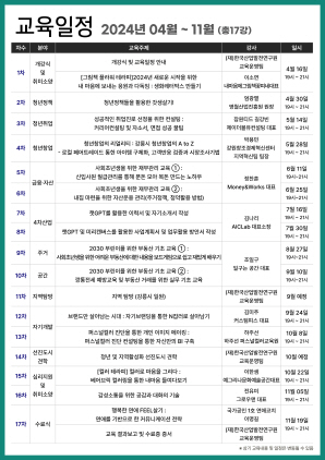 아카데미는 11월 19일까지 총 17회차로 운영되며 청년들의 고민을 공유하고 자립과 역량을 키울 수 있도록 취·창업, 재무관리, 챗GPT, 부동산, 내 마음 바로알기 등 급변하는 시대에 청년 스스로 삶을 바로 세울 수 있도록 강의 주제들을 선정·운영한다.