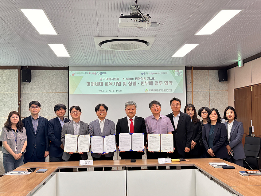 (강원=NSP통신) 조이호 기자 = 강원도특별자치도교육청 양구교육지원청(교육장 임남호)이 22일 양구교육지원청에서 한국수자원공사 평화의댐지사(지사장 이재환)와 지역 미래인재 양성을 위한 교육지원 업무협약을 체결했다.