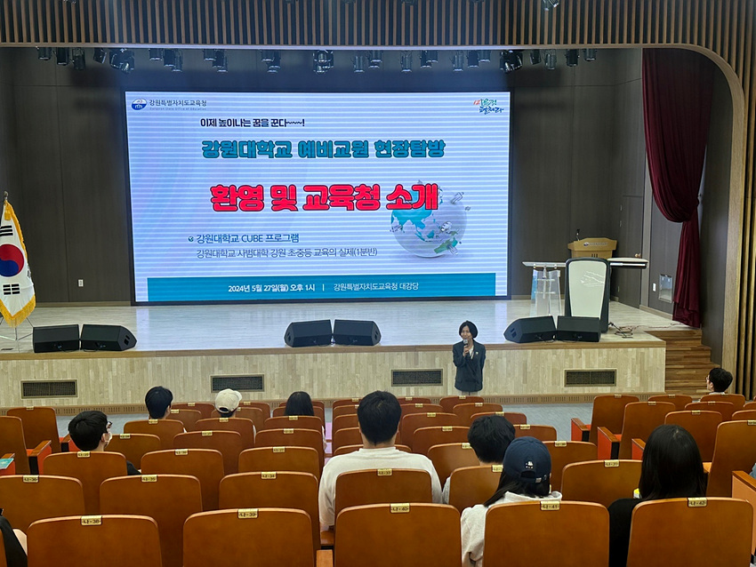 (강원=NSP통신) 조이호 기자 = 강원특별자치도교육청(교육감 신경호)이 27일 강원대학교 사범대학에서 ‘강원 초·중등교육의 실제’ 과목의 수강생들을 대상으로 교육청 현장 탐방 프로그램을 실시했다.