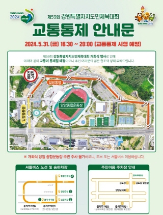 원활한 개회식을 위해 개회식장으로 진입하는 도로는 일방통행으로 운영되며 개회식장 주변 주차장 사용은 선수단과 초청자 외에는 통제되므로 이외 방문객들은 궁도장과 궁도장 건너편 주차장, 양양군의회 주차장, 남대천 둔치주차장을 이용하면 된다.