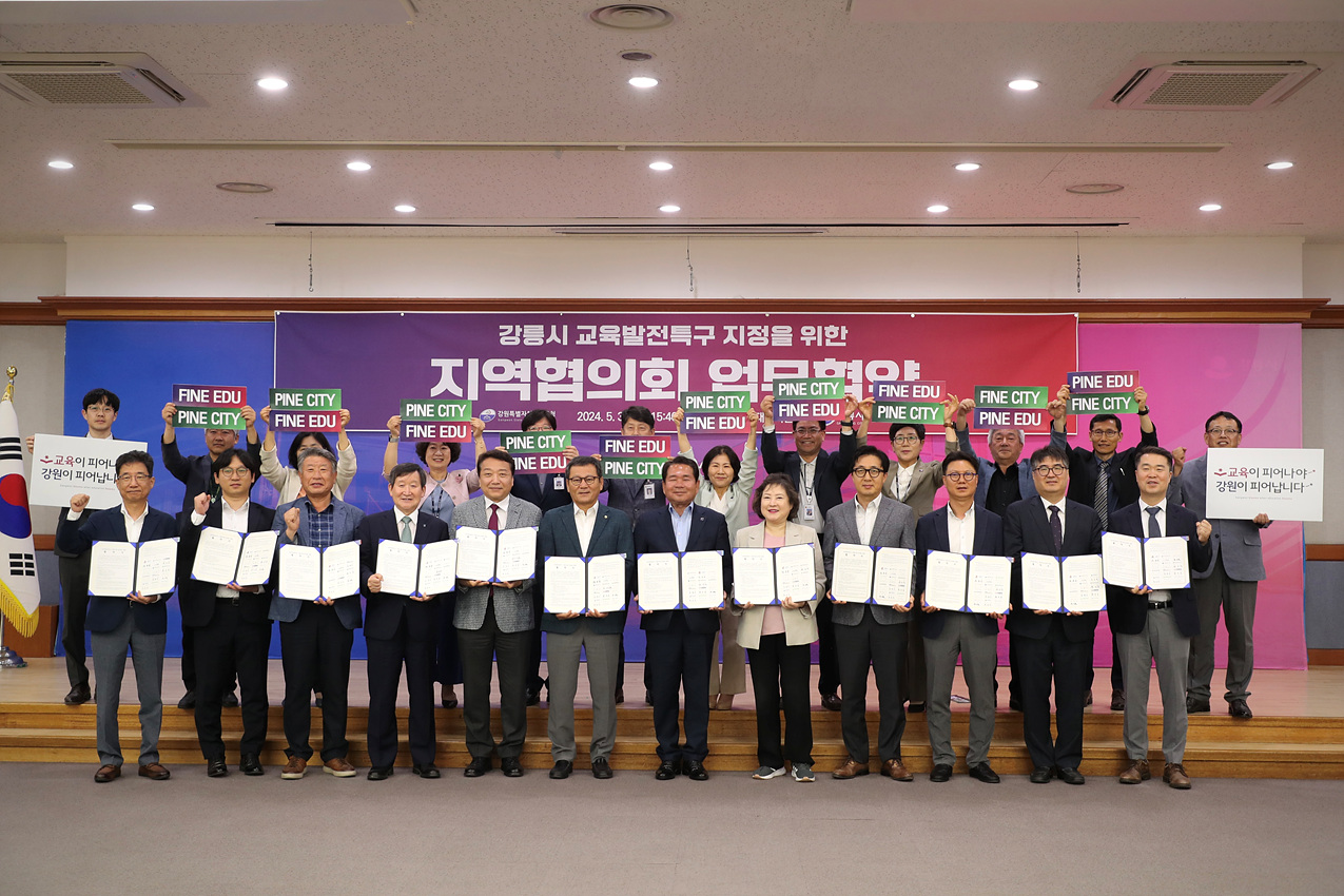 (강원=NSP통신) 조이호 기자 = 강원특별자치도교육청(교육감 신경호)이 지난달 31일 강릉시청에서 강릉시(시장 김홍규)와 교육발전특구 시범지역 2차 지정 및 지역교육 발전을 위한 업무협약을 체결했다.