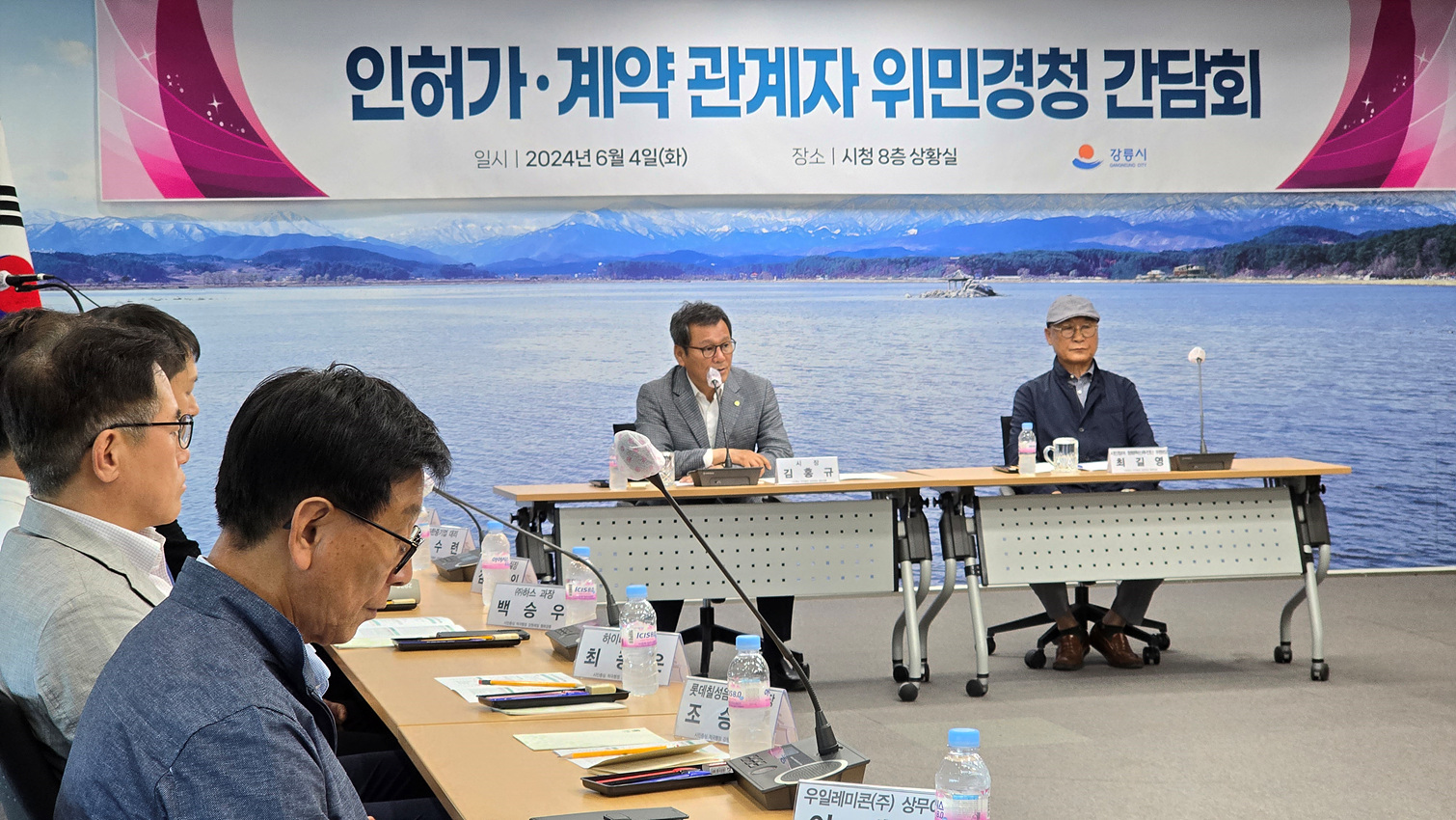 (강원=NSP통신) 조이호 기자 = 강원 강릉시(시장 김홍규)가 4일 시청 8층 상황실에서 김홍규 강릉시장 주재로 ‘인허가 및 계약 관계자 위민경청 간담회’를 개최했다.